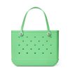 - X-Large (19x15x9.5) tote holds up to six large towels with room for snacks, suntan lotion and more. INCLUDES 2 clear accessory bags that pop into the holes anywhere inside or outside of the bag to keep smaller items within reach.